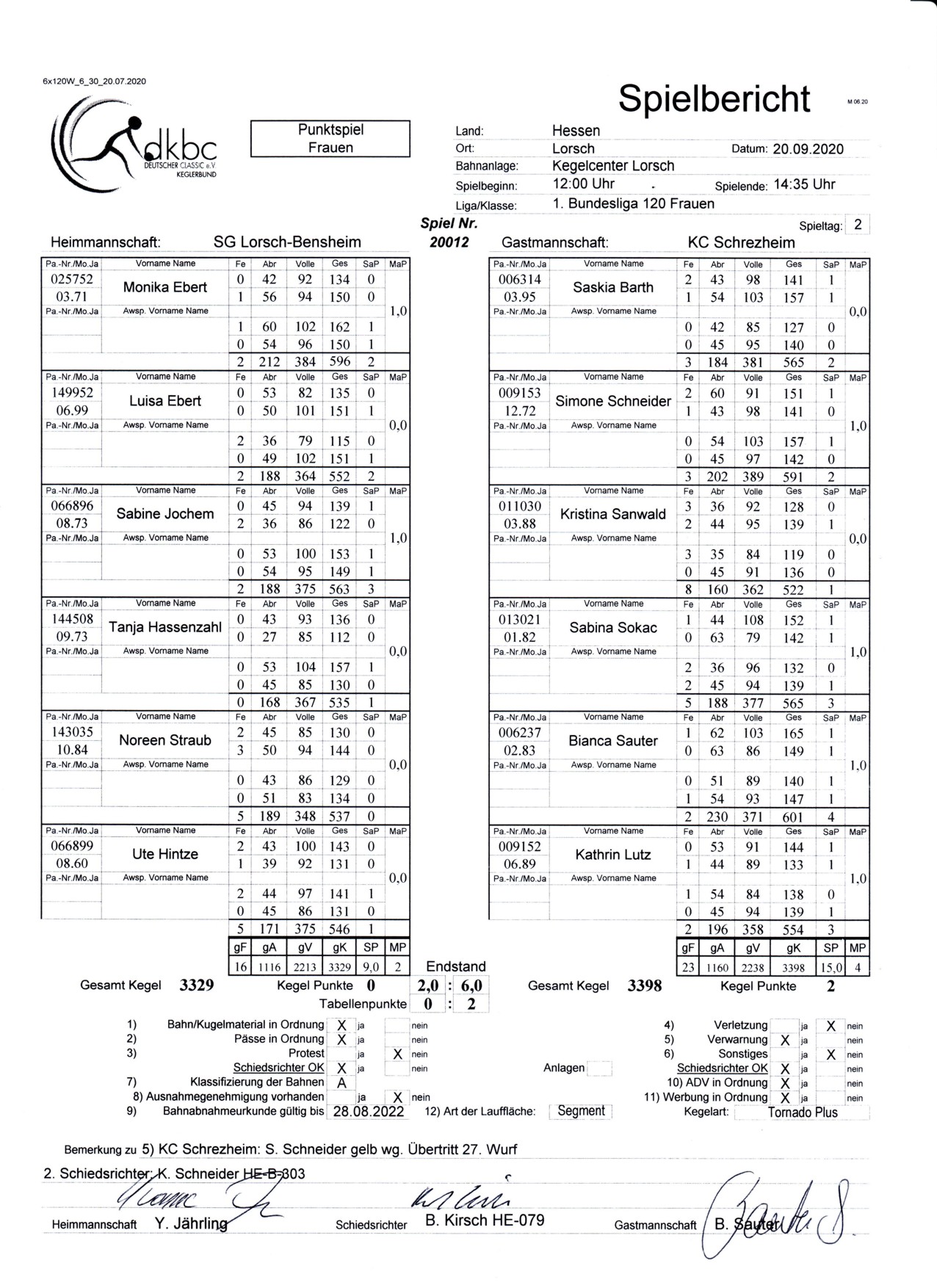 SG Lorsch / Bensheim 3329 zu 3398 KC Schrezheim