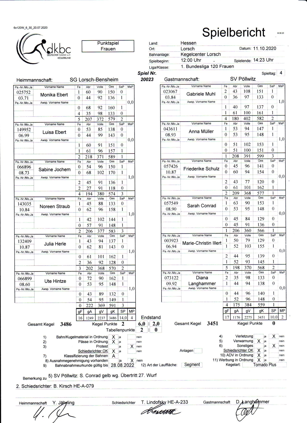 Endstand: 6:2, 3486- 3451
