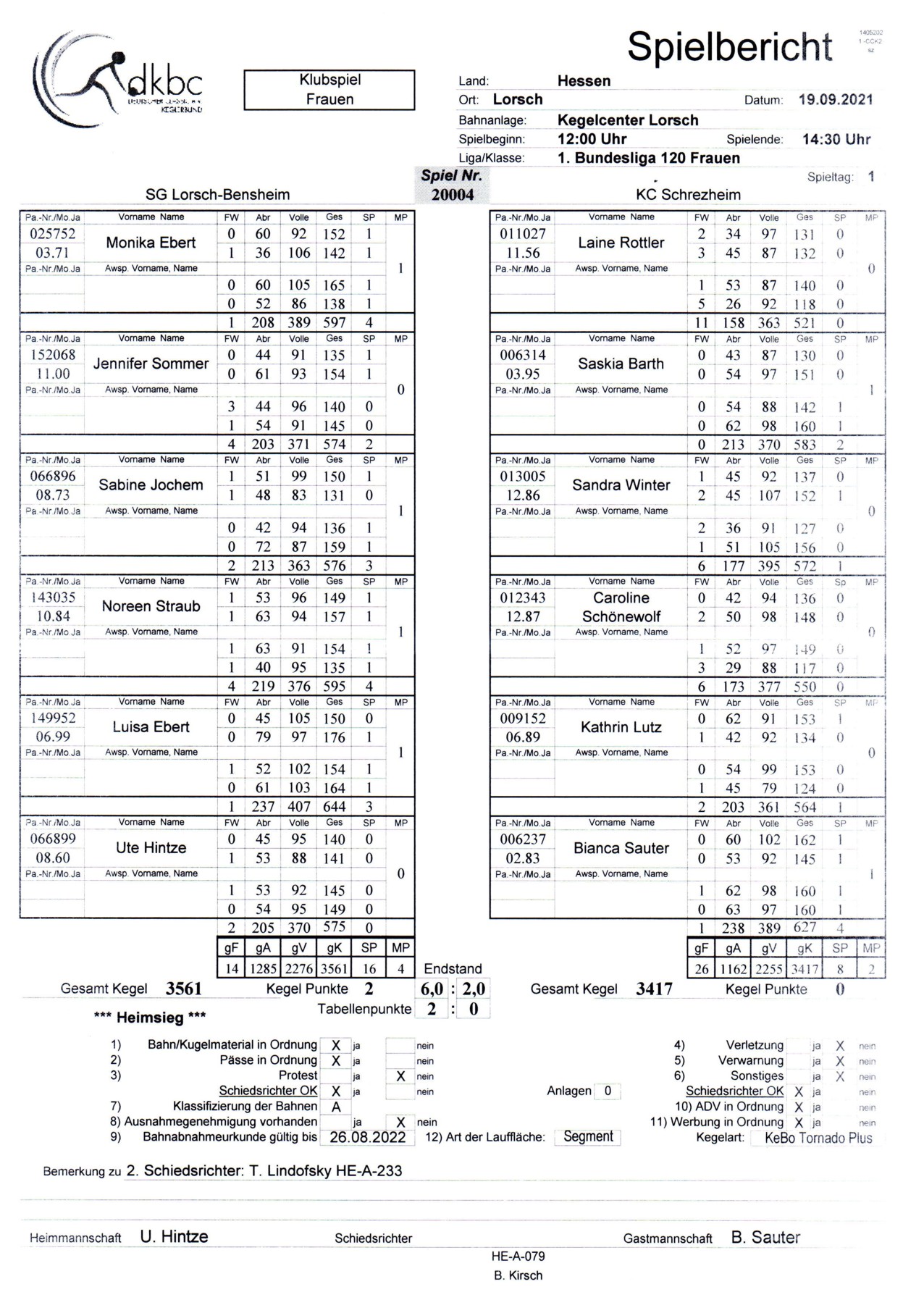 Grandioses Auftaktspiel mit Mannschaftsbestleistung von 3561