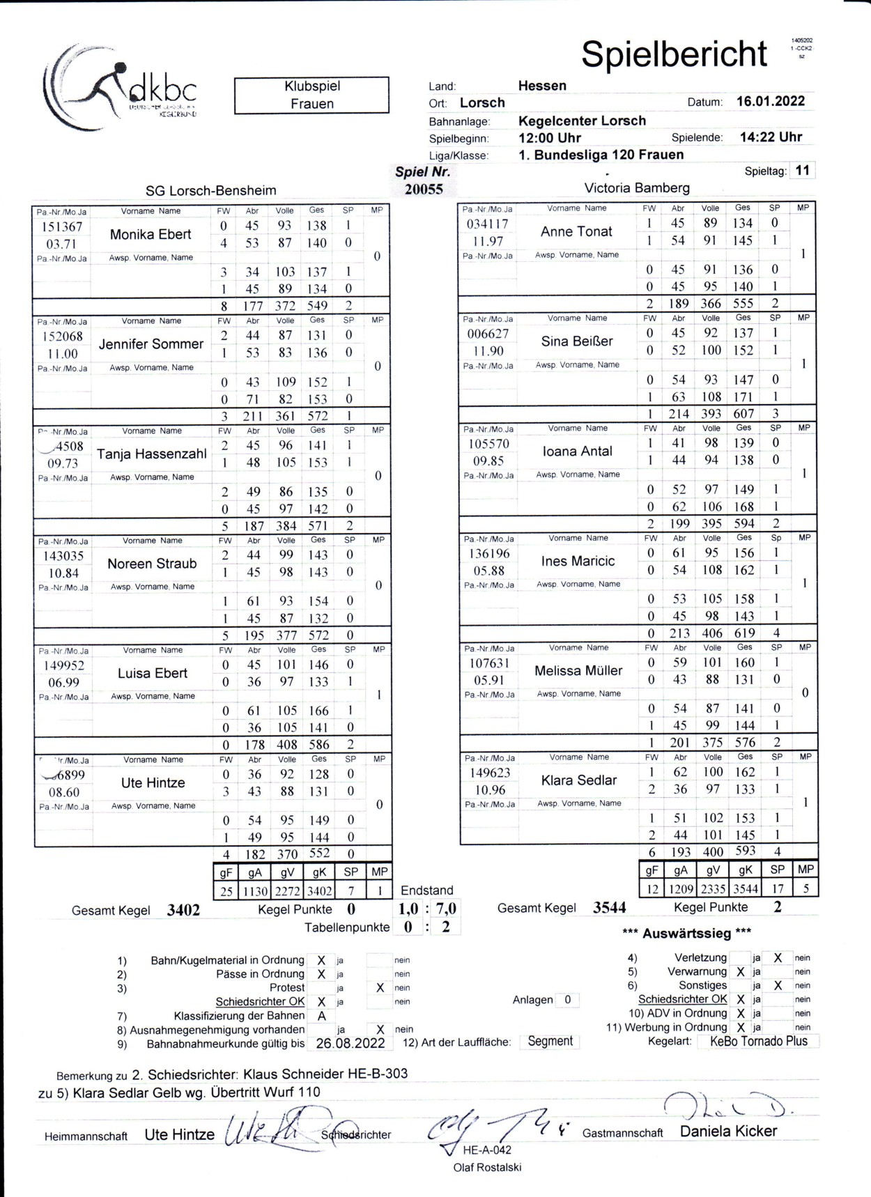 Mit 1:7 und 3402 zu 3544 war es ein verdienter Sieg für Bamberg und nächste Woche wird wieder