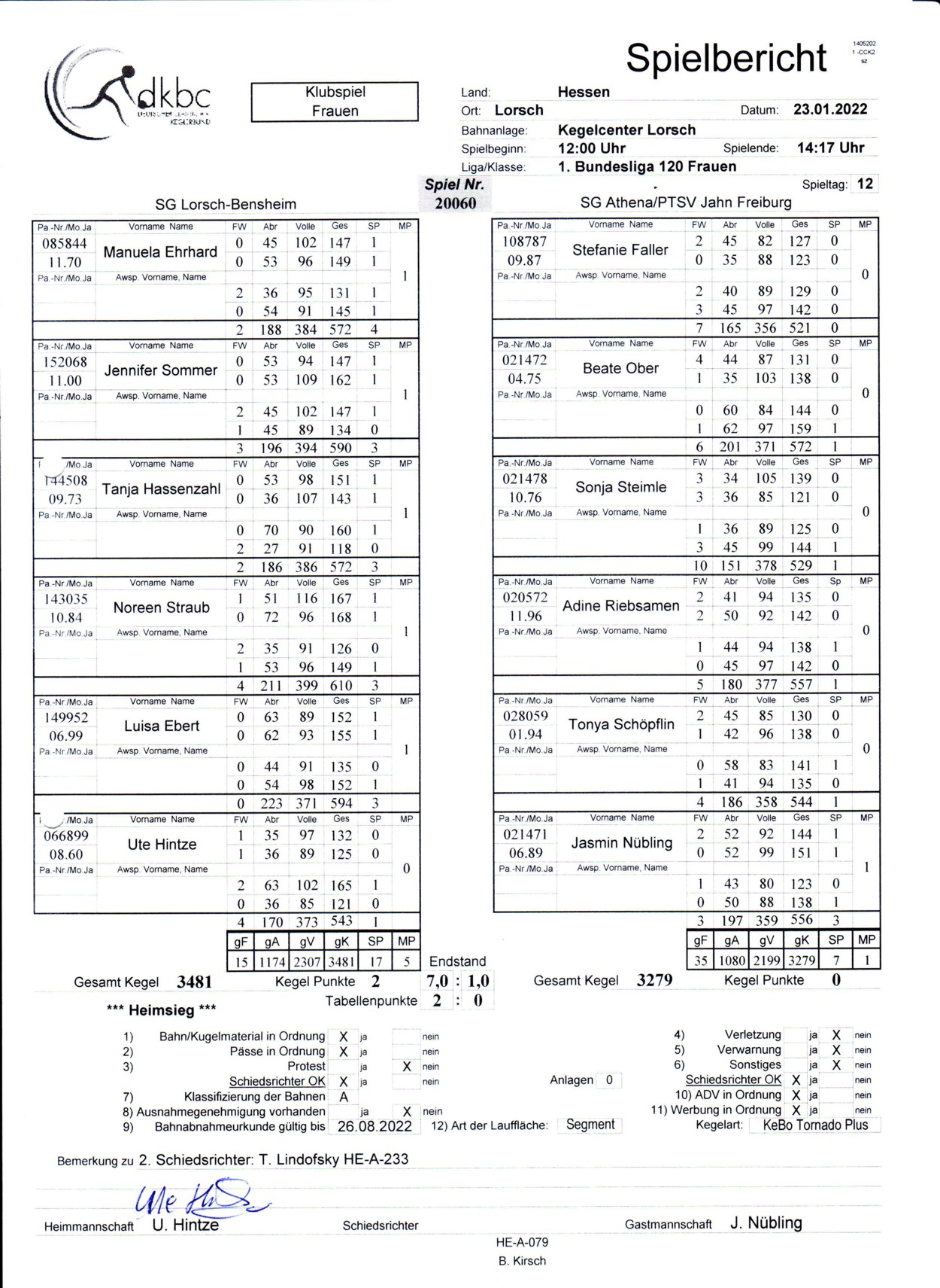 den Ehrenpunkt an Freiburg, mit 1:3 und 542 zu 556 Kegeln, abgeben.