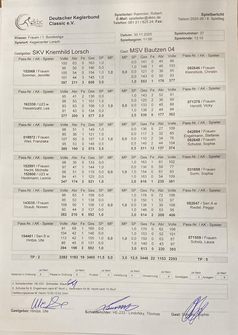 Die SKV Kriemhild Lorsch sicherte sich am 8. Spieltag