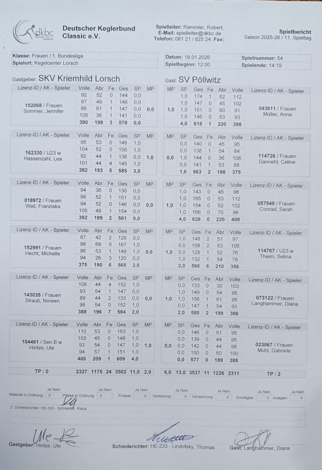 vergangenen Wochenende hatten die Frauen des SKV Kriemhild Lorsch den 2.