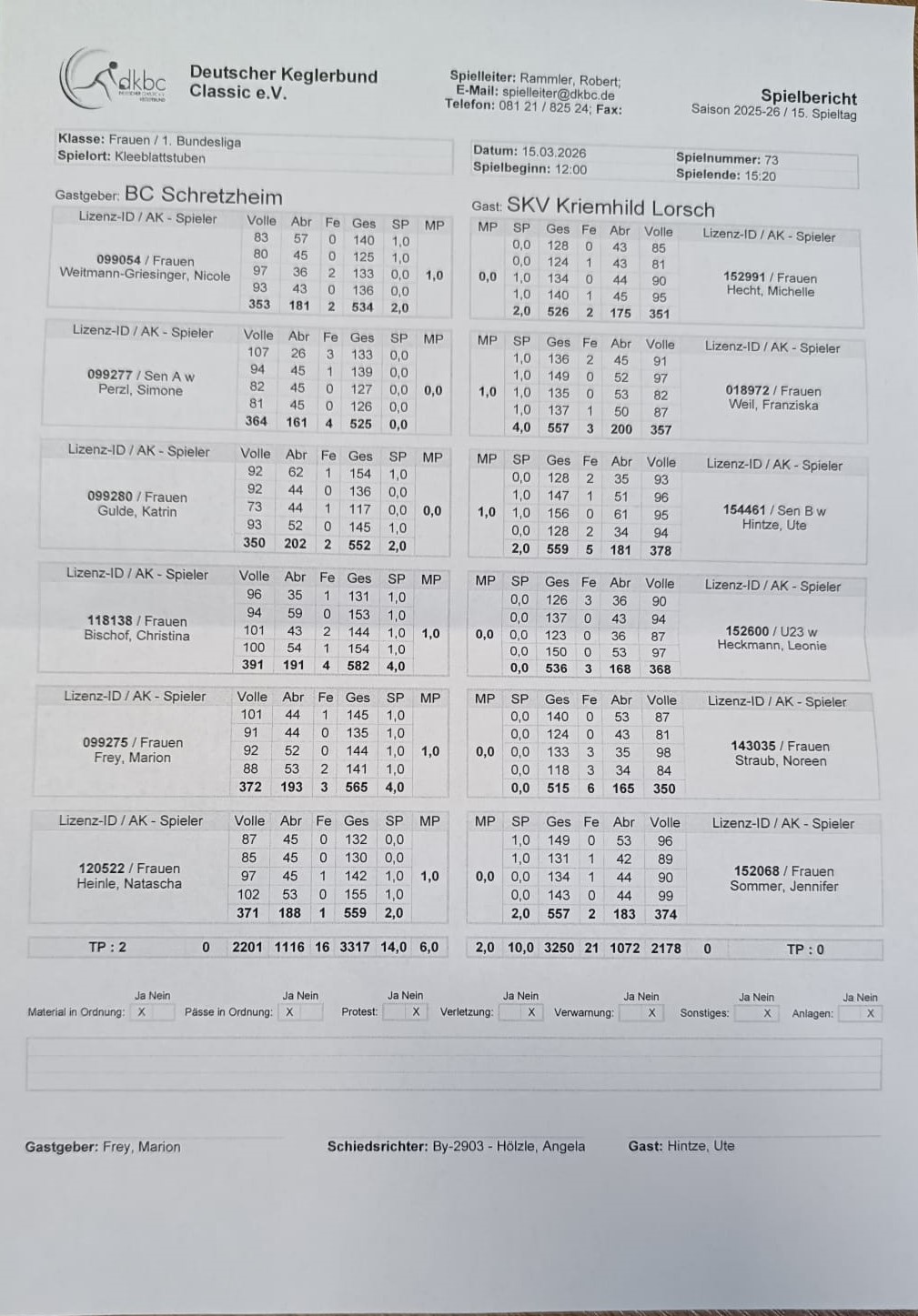 Kegel Vorsprung traten Ute Hintze gegen Katrin Gulde und Leonie Heckmann gegen