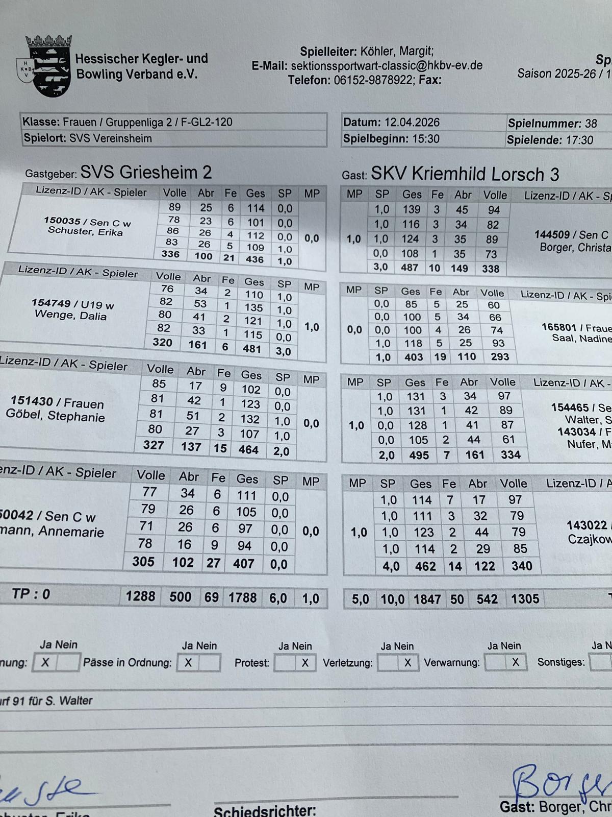 Diese Teamleistung von 495 Kegel wurde am Ende mit einem Mannschaftspunkt gegen