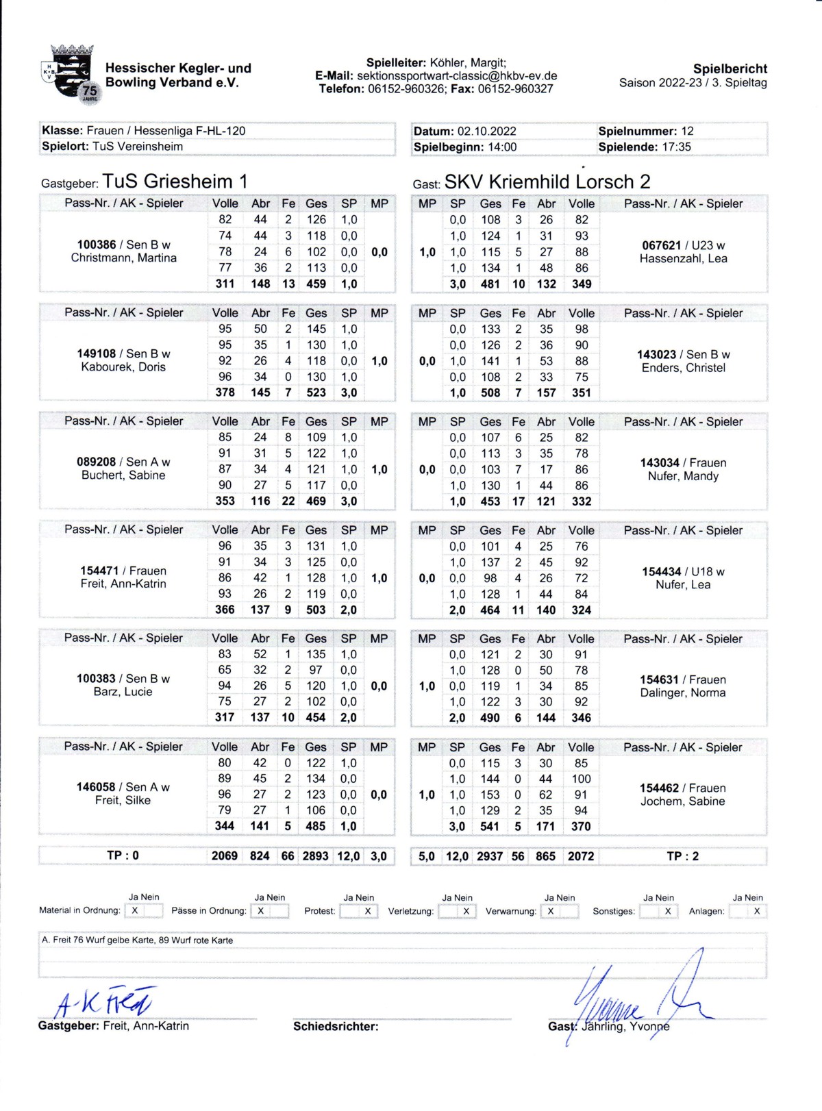 plus 56 Kegel und drei Sätzen ging der Mannschaftspunkt nach Lorsch. Auch Norma