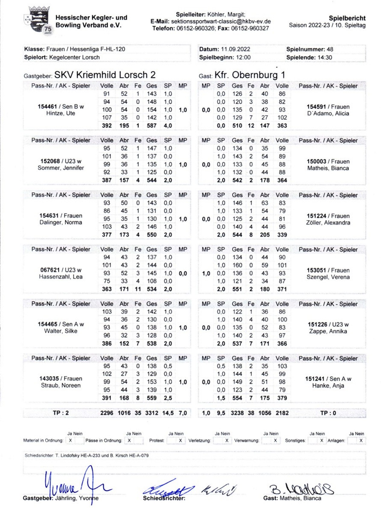 Spieltag am 11.09.22