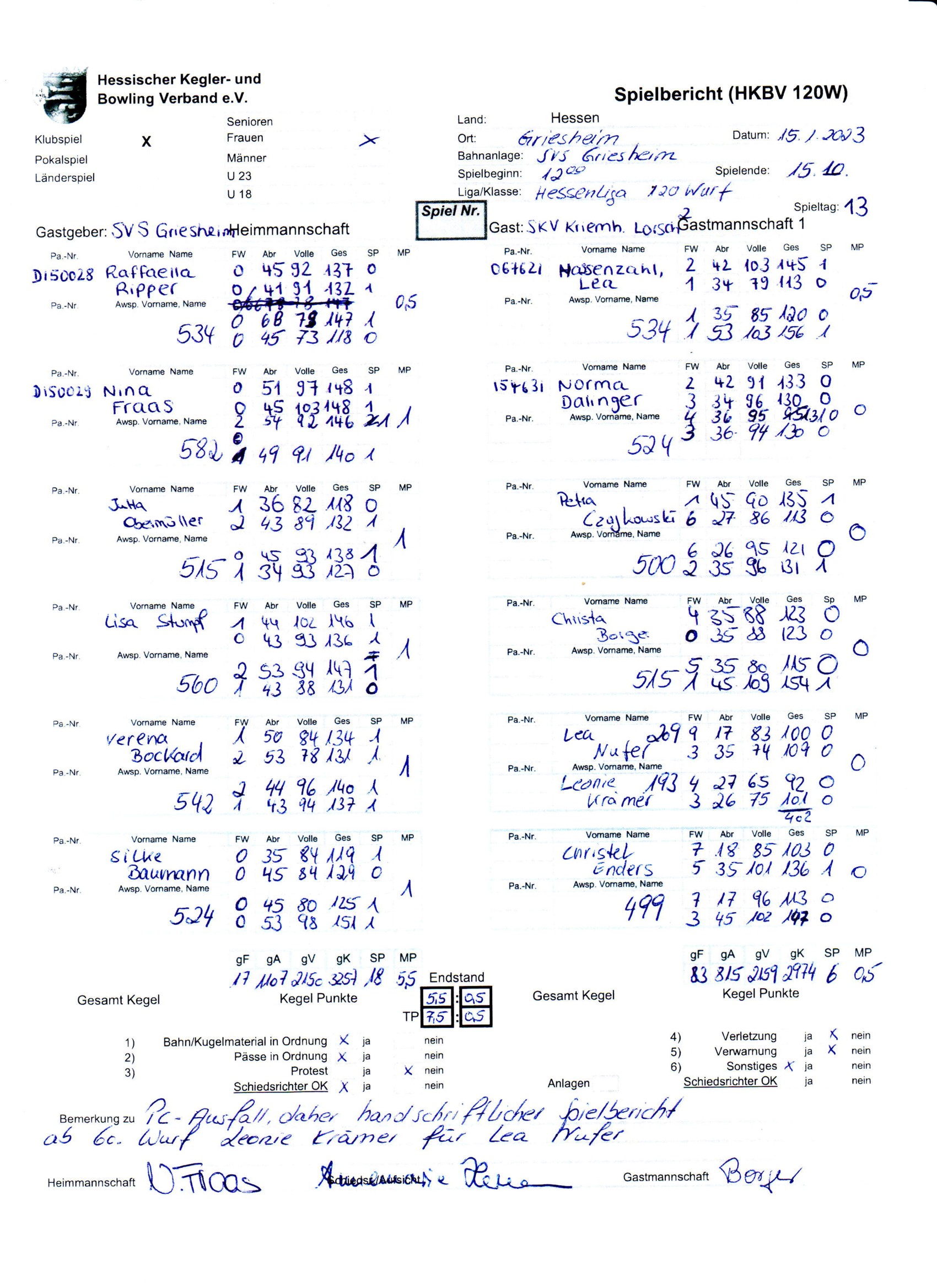 Endstand: 7,5 : 0,5 und minus 283 Kegel.