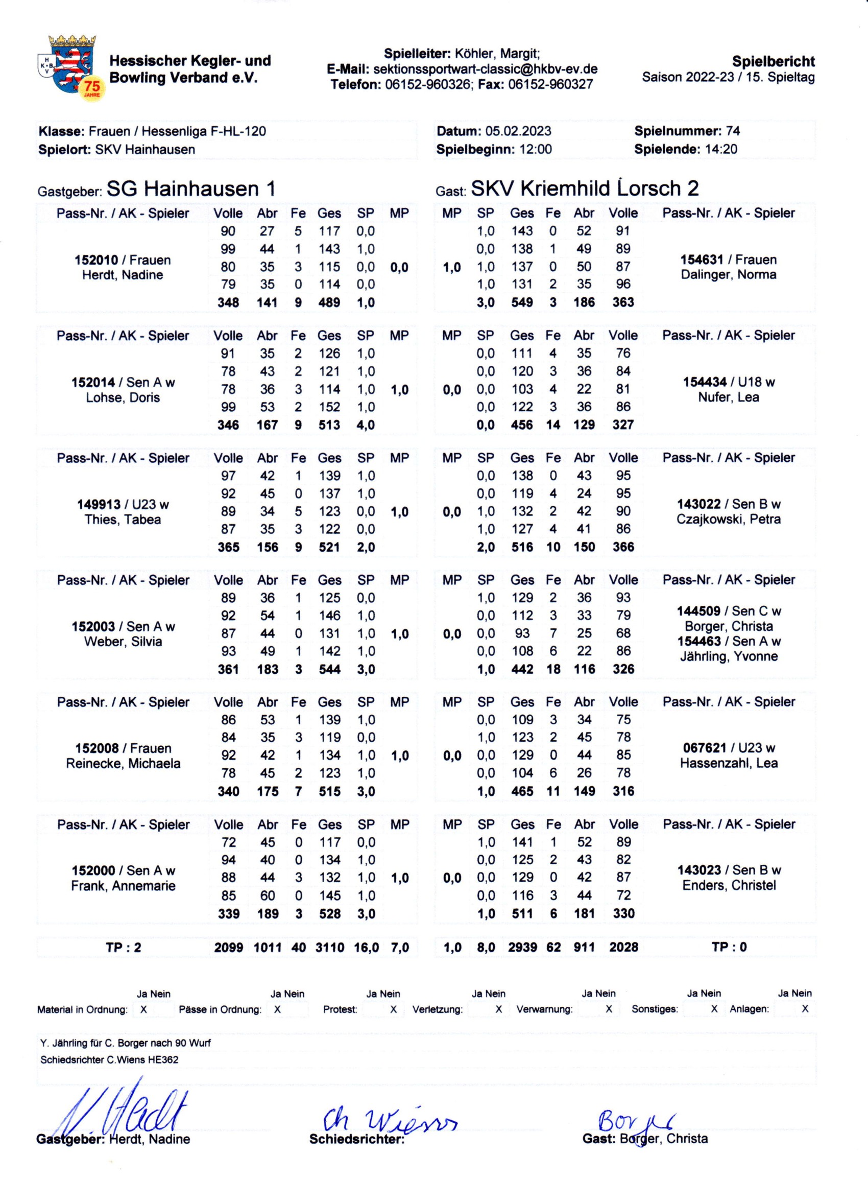 Spieltag am 05.02.23