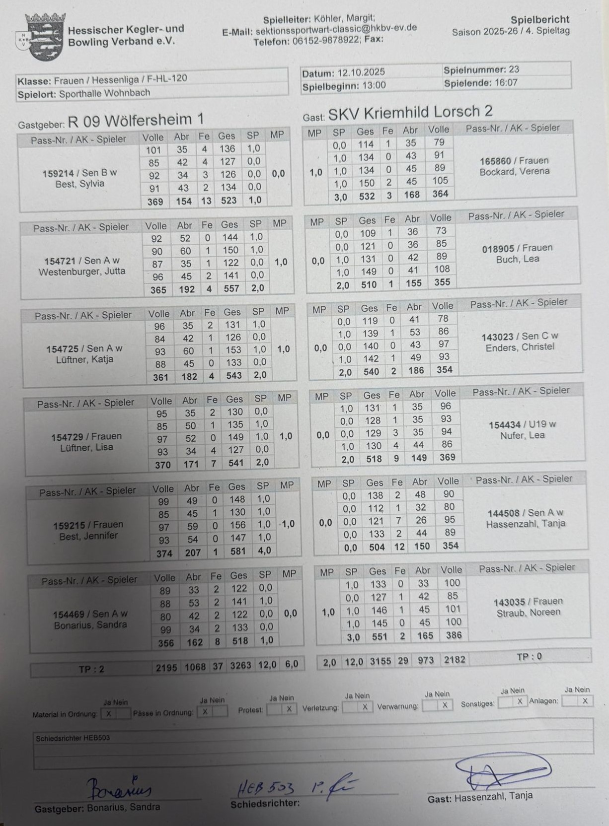 Sylvia Best 523 und somit den ersten Mannschaftspunkt für die Gäste. Lea Buch
