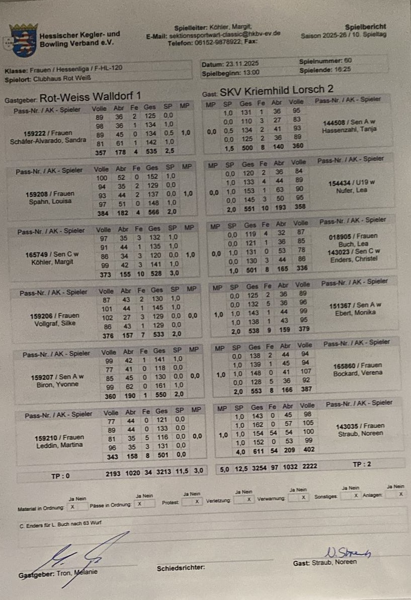 Bahnen. Der Lohn nach 2:2 Sätzen und 538:533 war unser erster Mannschaftspunkt.